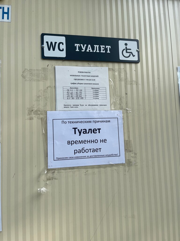 Туалет платный, чистый, но работает до 20.00, а потом что? Продлите часы работы хотя бы до 22.00