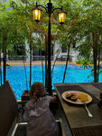 A wonderful hotel! Daily cleaning with replacement of towels, bed linen. They put 0.6 liters of water per person every day. The dental kit was only available upon check-in, and shampoo +shower gel was available. The breakfasts are normal, you can find them for yourself. Fruits-watermelon, melon, dragon fruit, pineapple daily. 3 types of yogurt, sliced fruit for yogurt! There are 5 types of medium juices, eggs in any form, greens, salads, soup are different every day. Cottage cheese, pastries and much more- there is a choice. Of course, it will arrive by the end of the rest, but at home you already want it after 2 days). Dinner is expensive 650 baht per person, we did not go, because there are a lot of cafes nearby where they gave a maximum of 800-900 baht with drinks for 3 people. The territory is gorgeous, the pools are just a buzz. The massage is perfect-taechki are smart! We spent a 3,000 baht deposit on massage and pizza on site. There are no problems with eviction-clearly, quickly and without complaints. I definitely recommend the hotel!