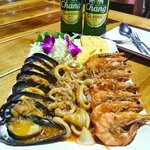 We had a great buffet in April 2025, several types of soups, fresh fish is fried, grilled shrimp is delicious, cola, sprite, pizza, meat is delicious. Children under 8 years old are free! But when we were in September 2025, dinner was ruined: juices and drinks were removed, and the range of dishes was reduced. And since October 1, due to the season, prices have been raised in general, there were 450 baht, it became 650, there is definitely no point in going. But the food is delicious, everything is clean, the staff is very friendly.