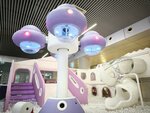 Детский центр понравился. Все новое, интересно было детям 4 и 12 лет. Особенно понравилось карусель с самолетиками и светящиеся горки. 👍 В кафе цены приемлемые, персонал вежливый. Были в пятницу днем, народу немного. Единственное пожелание: поставьте лавки или стулья в раздевалке с ящиками. Невозможно переодеть ребенка, только сидя на голом полу 🤷‍♂️
