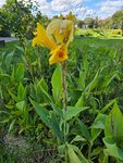 К тюльпанному дереву вышла случайно. Сразу увидела автобус, привезший экскурсантов. Само дерево довольно большое и раскидистое. Не сразу заметила на нем цветы. Они небольшие, похожие на тюльпан или лилию, желтоватого цвета с пестиками. Самому дереву 250 лет.