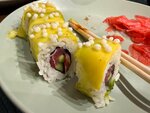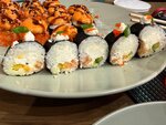 Рис, нори, лосось, спайси соус.