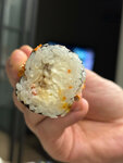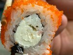 рис, лосось, рисовые шарики, тобико, сыр сливочный.