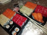Первый раз заказывала в Мытищах, понравилось и решила попробовать доставку из Пушкино. Привезли минут за 35 от момента подтверждения заказа (я живу минутах в 40 пешком до ресторана). Привезли всё вкусное и горячее(что должно было таковым быть). Но в наборе мини 3 есть ролл с гриль лососем и на сайте он выглядит как рубленный лосось на поверхности ролла, а в реале привезли ролл с шапочкой из чего-то розового и кусочком лосося. Вкусненько, но немного огорчило. Из минусов: роллы показались суховаты в комплекте только палочки и салфетки непонятная система с доставкой акционных товаров. То ли речь про скидки, то ли про акции с баннеров, но делая заказ из мытищ по баннеру мы ничего не доплачивали Из плюсов: роллы нормального размера, не крохотульки не отравились:) цена ниже средней среди ресторанов, где я заказывала ранее хороший выбор отдельных позиций и наборов, интересные сочетания можно списывать часть суммы бонусами. Для того чтоб утолить периодическое желание поесть роллы этот суши бар подходит хорошо, с учётом доставки всего от 700р Фото я не сделала, только тех лососевых, на скорую руку, по факту выглядят они аппетитнее и красивее!