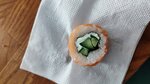Я не верю что заплатил за это 700 ₽, роллы "Филадельфия классик". Рыба толщиной 1 миллиметр, даже удивляюсь как им удаëтся еë нарезать так тонко, она в прямом смысле прозрачная. Внутренняя начинка 80% огурец. На вкус это все как огурец с рисом, с нотками нори. Говорить о вкусе рыбы даже не буду так как его там нет. Реальная стоимость этих роллов 150₽. Это был мой первый раз заказа в "Тунец", и теперь уже последний. Хорошо что заказал только одну порцию а не сет.