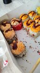 Заказали доставку. Суши ужас, запах рыбного рынка после полудня. Решили попробовать, на вкус ужасны, рис с запахом минтая, роллы с мидией это треть мидии поверх соуса. Филадельфия температура с рисом и сыром, запечённые роллы вообще без ничего, соус сверху, внутри рис, огурец и сыр. Ужас