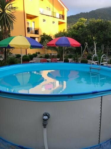 Nice rooms, clean, quite spacious. 10 minutes walk to the sea, there is a shop, a mini pool for children. The room has all the necessary equipment, a washing machine, a TV, an iron