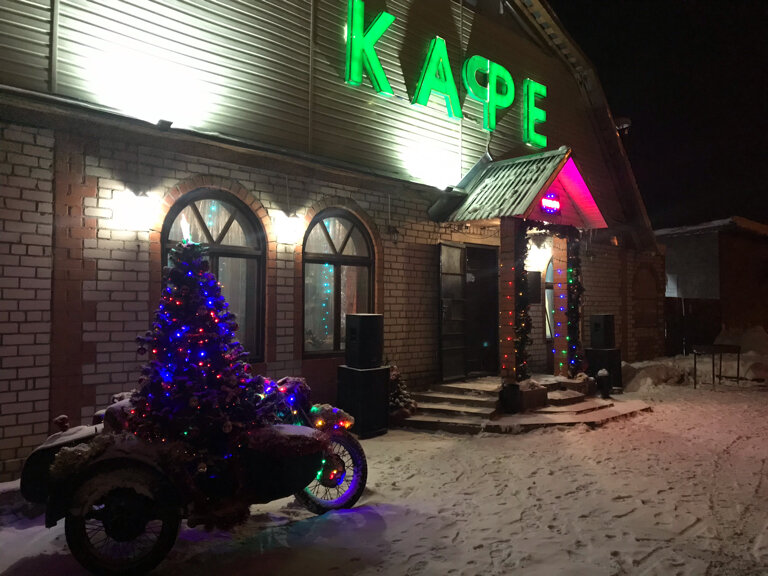 Очень душевное место. Всегда можно отдохнуть. Вкусная еда. Интересные мероприятия. Есть возможность починить машину и мотоцикл. Большая стоянка для транспорта перед кафе.