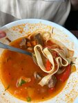 Посетили это заведение. Впечатление ужасное. Заказали лагман из баранины, бараниной даже и не пахло, обыкновенный суп да ещё и не очень вкусный, а самЫЕ ужасные были хинкали из баранины. Повара явно не знакомы с кавказской кухней. Фарш был сухой, тесто было как для пирожков толстое и рыхлое и все рвалось. Отвратительное кафе которое позиционирует себя как ресторан, от ресторана только сервисный сбор 100 рублей с человека которые не забыли включить в чек.