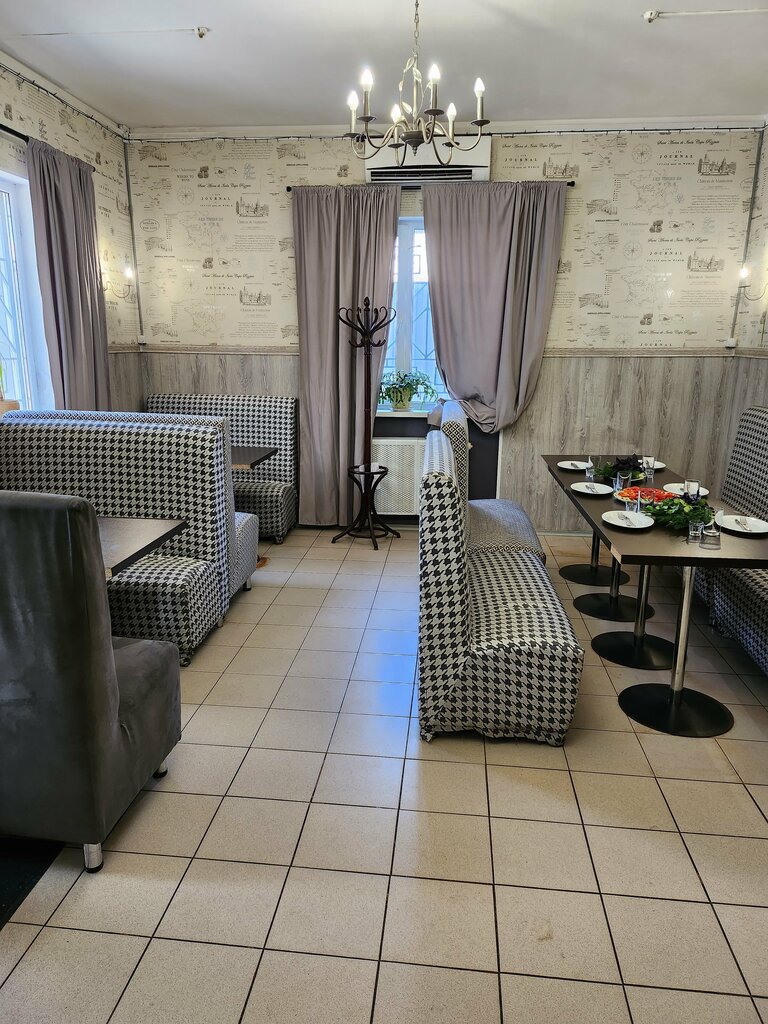 Еда на твердую четверку: без изысков, но вполне достойно. В меню только базовая еда: три вида супа, три вида салата, три вида горячего и гарниров. Но интерьер хорошо бы немного подлатать, хоть косметически. Такое ощущение, что в гараже обедаешь. Найти сложно: снаружи никакой вывески, мимо проехали в первый раз, потом вернулся. Всё в комплексе на пятёрку никак не тянет, однако рядом, скорее всего, для обедов ничего более достойного нет, отсюда и оценки.