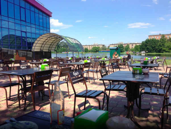 Не плохое место, для отдыха на террасе. Цены не маленькие, но можно со своим алкоголем, пробковый сбор 50/50 либо снимут, либо нет. Паршивая живая музыка, в исполнении женщинвюы без слуха и голоса))) Вкусная баранина и люля. Контингент разнообразный. Официанты , тоже как повезет. Плюсы, вид на воду и могут проканать свои напитки) Из минусов, с плохим настроением сидите дома)