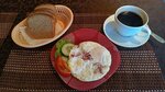 Тезисно: Не снимают копию паспорта, а записывают в журнал – редкость. Странная нумерация – номер 15 на 3-м этаже. На окнах нет сеток, хотя и комаров нет. Кондиционер повесили по уму. Кровать широкая, но скрипучая, и пружины матраца выпирают. Нет ночника. Под кроватью и под столиком может лежать мусор. Двери картонные – слышимость отличная. Санузел в порядке, но вода пахнет – местная специфика. Кафе работает только утром. Завтраки слишком лёгкие для крупного мужика. Резюме: Всё прилично, жить можно, но цена на грани и по мелочи косяков хватает.