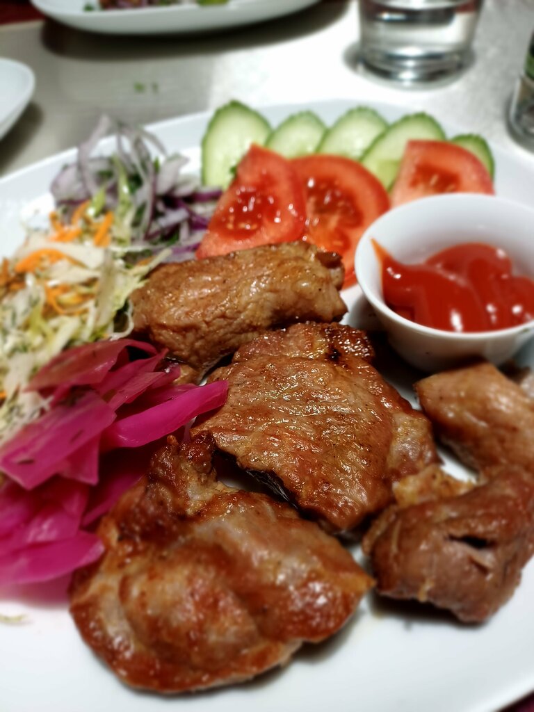 Великолепное место. Брали там дому, шашлык куриный, люля баранина и люля телятина. По пальцам можно пересчитать места где шашлык настолько хорошо, что хочется поблагодарить повара, а не просто сказать спасибо. Памятка для посетителей: Займите место в любом зале Далее ознакомившись с меню идите в зал #1 и там сделайте на кассе заказ и оплатите его. Получите после оплаты номерок для стола и поставьте его на своем столе где расположились Сохраняйте чек, туалет платный в заведении, но при предъявлении чека для посетителей кафе посещение бесплатно. В меню есть Пити, жаль не удалось ее попробовать Все заказанные мной блюда были в составе нарезкой овощей и лепешкой.