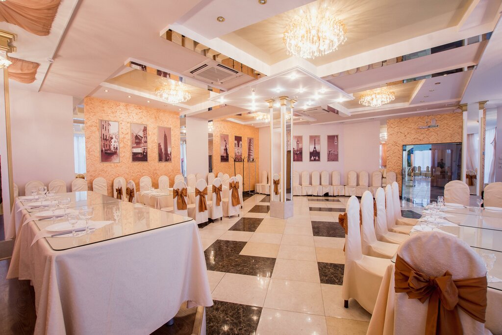 Отмечала свой юбилей в персиковом зале! Зал не плохой, чистый ,место много, в плане кухне , приготовлено хорошо, Жульен, картошка по деревенски - мясо мало, Садж удался, в плане сервировки некоторых блюд как сырная фантазия очень не красивая оформление и саму тарелку надо поменять, стремитесь к красоте, официанты вежливые , понимающие молодцы. Спасибо большое за доставленные услуги желаю быть лучшими.