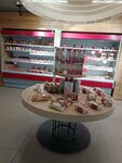 Продукция свежая. Персонал приветлив. Готов оказать помощь в выборе продукции. Горячие напитки недорогие. Есть места где спокойно можно посидеть за чашечкой кофе. Тарелки для пироженого не оказалось...