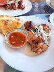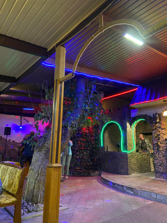 Не плохое кафе. Приятные учтивые официанты. Остальной персонал хамоватый. Меню одно и тоже. Комплексные обеды одни и те же. Но вкусные. Дети были сыты. Порции не большие. Минусы: не большой выбор, мясо шашлык суховато и не докладывают если заказали грам 600 ждите 400-500. С Креветками так же обвешивают. И больше всего не понравилось то как мужчина который поет сделал замечание в микрофон девушке сделала одно фото или видео на телефон. Люди на отдыхе. Вы поете в общественном месте. Не нравится внимание. Не пойте, меняйте место. Пойте дома. Или вешайте информацию что съемка и фото запрещены. Не приятно это выглядело на все кафе в микрофон и не культурно. Есть такой и воспитание, можно было передать через официанта.