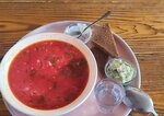 1. One of the best beef borshts I've ever had 2. Comes with sour cream, rye bread & creamy spread, onion, garlic-plus a shot of gorilka 3. Friendly waitresses who know how to tempt you into ordering more 4. Interior feels like my Ukrainian grandmother's house 5. Great location-close to most city attractions 1. Один из лучших борщей с говядиной в моей жизни 2. Подаётся со сметаной, ржаным хлебом и сливочной намазкой, луком, чесноком и рюмкой горилки 3. Официантки дружелюбные и умеют уговорить на вкусные добавки 4. Интерьер как у бабушки в Украине 5. Удачное расположение - рядом с главными достопримечательностями 1. One of the best goods borscht in my life 2. Borscht comes with sourdough, rye bread and cream, onion, garlic and a glass of gorilka 3. The waiters are friendly and know how to convince you to order more delicious dishes 4. The interior resembles my Ukrainian grandmother's House 5. Good location-close to the main attractions of the city
