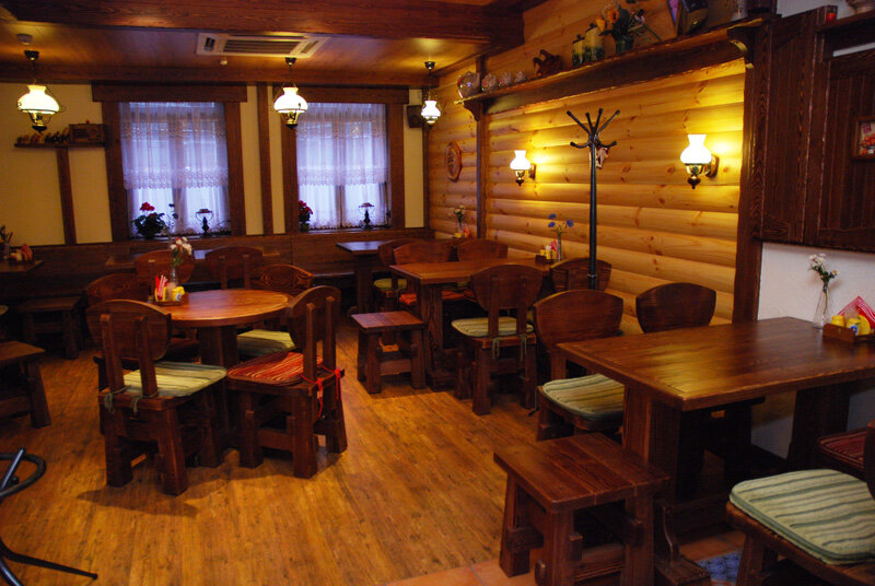 Приличное кафе в центре города где можно вкусно и недорого поесть. Обстановка внутри сделана под деревенскую избу. Меню блюд на любой вкус, можно прийти с детьми.