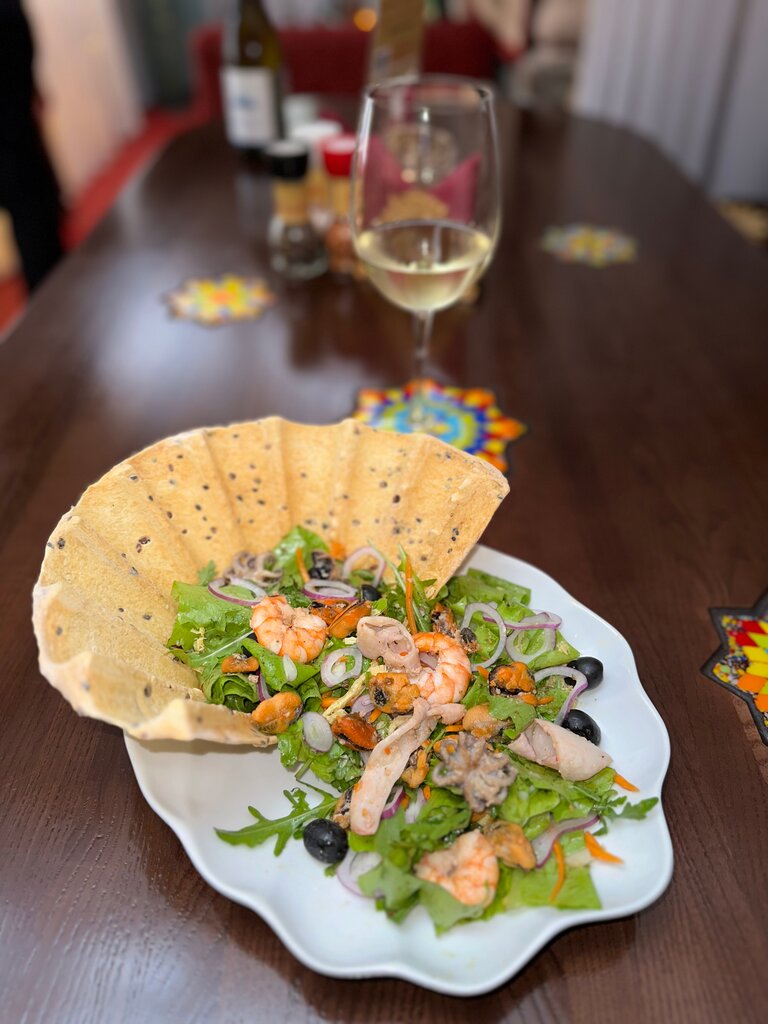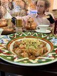 Здравствуйте. Нам посоветовали провести день рождение в ресторане . Мы заранее забронировали столик . На входе нас встретил дружелюбный хостел . В гардеробе оставили одежду и прошли во внутрь заведения . Интерьер особо не зацепил так как ремонт был заделан лет 10 назад . Первые минуты были смешанные чувства . Меню на планшетах и все это было в новинку для нас . После того как мы сделали заказ нам принесли огромную табличку с надписью с днем рождения . Мы обогрелись и восточная музыка начала радовать наш слух . Принесли заказ и мы с нетерпением начали уплетать изыски . Эти блюда приготовлены очень вкусно . И мы удивленно переглядывались и уплетали салаты., чебуреки . Пили чай и наслаждались десертами . В конце вечера к нам вышел весь персонал и поздравил с днем рождения и угостили тортиком .