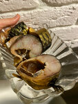 Купили скумбрию, она испорчена, бензинового цвета. Купили копченого окуня (на прилавке лежали свежие, жирные, хорошие рыбины)- старая рыба, резиновая, сухая, несъедобная, при цене за 1 кг- 1600 рублей