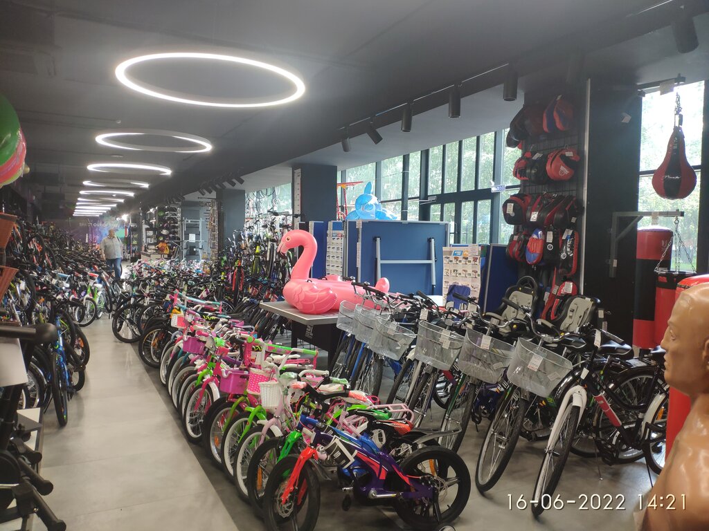 Ездили за великом. Очень большой выбор- в зале наверное штук 100. Молодой человек помог с выбором. Купили Стелс нового поколения. Много разных фишек для велосипеда. В другом зале можно подобрать всё что угодно для других видов спорта.