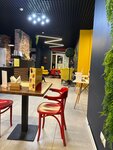 Отличное кафе. Есть игровая для детей, что не маловажно с двумя малышами. Можно спокойно выпить кофе пока они играют. Единственный пожалуй минус, это отсутствие места для колясок и самокатов в самом помещении, что не маловажно когда гуляешь с детьми не хочется оставлять коляску или детский самокат на улице. А в остальном все на уровне. Успехов и процветания.