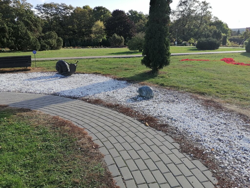 Not far from the main entrance to the botanical garden there is a group of cute genre sculptures: Toad, Turtle, Crocodile, Bunny, Hedgehog and Snail. The performance is simple, but it makes you smile, and a walk through the garden seems to become more fun and interesting. )) After all, nature is not just about plants. You can take a little break from walking and contemplating the beautiful and indulge. )) For example, to "ride" a turtle or snail. Well, such figures are a joy for children. The botanical garden itself also made an impression! Large, well maintained, beautiful. There are a lot of interesting things there. I definitely recommend it