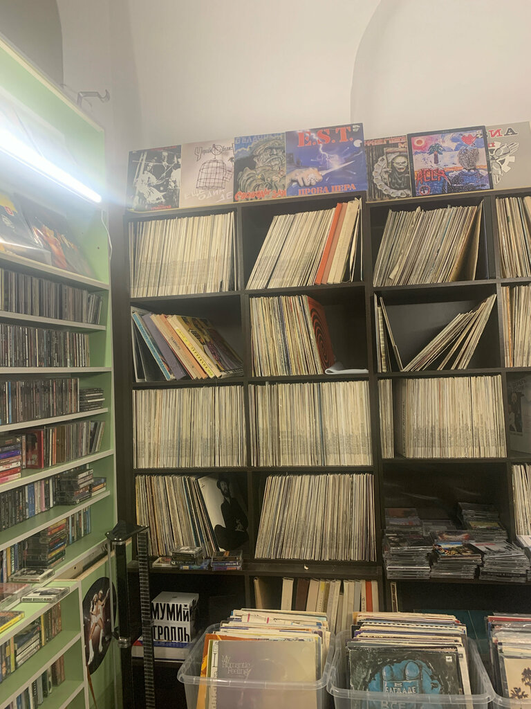 Большой выбор зарубежного и советского винила, аудиокассет, дисков и других товаров, связанных с музыкой. Приятный продавец и очень атмосферное место
