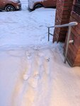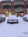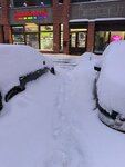 Обычное состояние территории перед магазином зимой: глубокий снег и лед, в том числе на ступенях, машины, полностью перегородившие проход, и полный игнор сугробов со стороны директора и сотрудников...