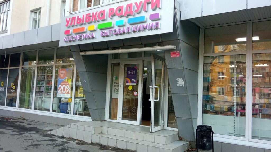 Улыбка радуги хороший магазин если вы хотите подобрать себе шампунь или зубную пасту здесь туалетная бумага есть антисептик для рук так же копятся баллы на карте