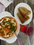 Очень вкусно покушали. Взяли два лагмана, позы, блины, 2 пироженных , компоты 2 - вышло всего до 1170₽. Лагман вкусный , подали сразу, лапша в нем вкусная, порция огромная. На позы было небольшое ожидание , но тоже подали быстро. Советую+