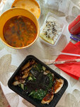 Еда была вкусная , тарелки из под супов были мятые и соответственно приехали пролитые в пакет. В чат написали , молчат