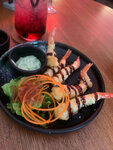 Славное заведение! Шустрые, неназойливые официанты; аутентичные интерьер и музыка; быстрая подача блюд. Запеченные роллы с крабом - фантастика, порадовала также мягкость курицы в воке. Единственный недостаток - чай с грейпфрутом: вкусовщина, конечно, на любителя. Но вопрос не к заведению, просто сам оказался не готов к такому опыту, привык к чему-то более простому и классическому. Обязательно приду ещё, отобедать и поболтать с друзьями - замечательный вариант.