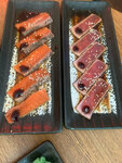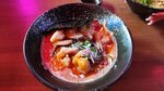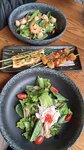 Очень вкусный рамен в разном исполнении. Мой персональный фаворит паназиатский рамен 10 из 10. Вкусно приготовлены морепродукты, очень нежное мясо, можно распробовать на вкус. Сэт из шашлычков немного огорчил, мясо курицы и свинины пережарено, и на шашлычке всего по 3, остальное чери. Подруге понравились гунканы с гребешком и креветкой.