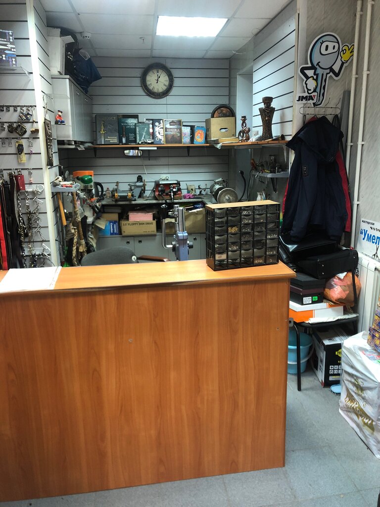 Отличный мастер. Делает кнопки, люверсы, ключи. Заточка инструмента.