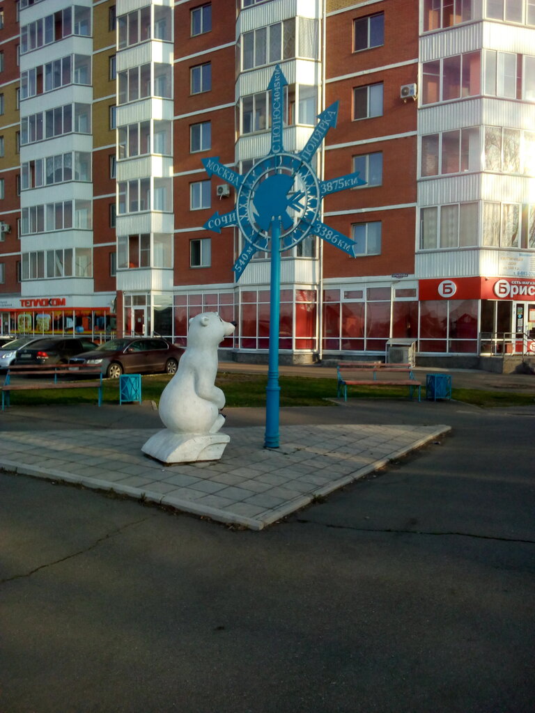 Милая скульптура.Лавочки, можно гулять с детьми,но рядом магазин с алкоголем.не совсем к месту,на мой взляд
