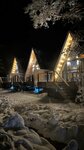 Идеальное место. Волшебные горы! Очень уютные и атмосферные домики с печью ✨ Парковка большая, есть детская площадка, необходимо учесть момент, что удобства на улице:)