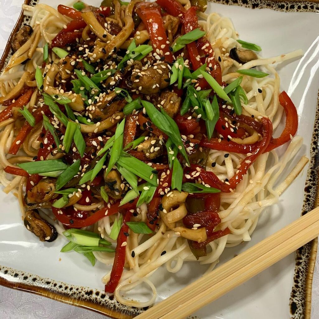 Variety of food:sushi and rolls, pizza, fixed meal, сhinese food
