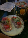 Пришла с подругами, покушать и выпить чего нибудь вкусненького, заказали мы брускетты с лососем и авокадо,с тартаром очень понравилось. Из напитков мы заказали шоты Tropical, cowberry, ну очень понравилось. Атмосфера просто огонь, комфортно очень. Также на выходных есть караоке. Будем заходить на выходных.