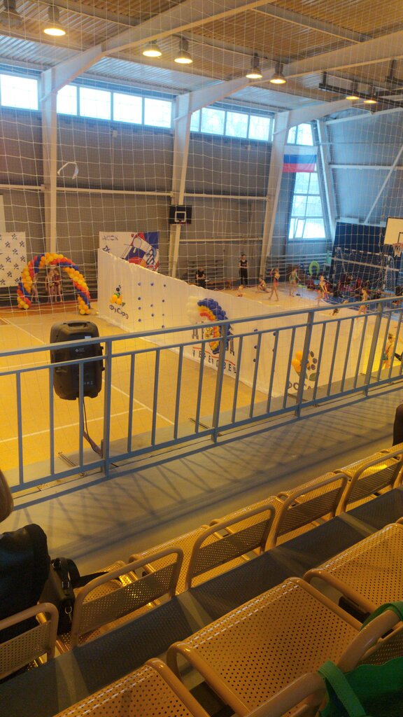 Темновато, но очень тепло, даже жарко. Классно, что есть трибуны, зал оборудован звуком. Мы ожидали худшего, но приём команды-хозяев сгладил все недочёты.