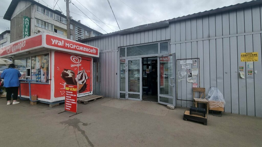 Есть практически всё: одежда женская и мужская, детская. Обувь детская. Бытовая косметика. Инструмент для ремонта. Всё для шитья и вязания. Продажа и пошив штор. Так же батарейки, и т п.