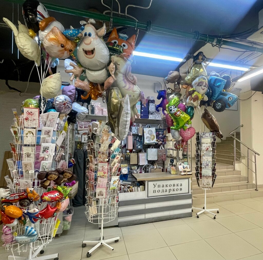 Здесь вам помогут упаковать и оформить подарок. Можно подобрать упаковочный материал для самостоятельного оформления подарка. Шарики, свечи, открытки на любое торжество и юбилей.