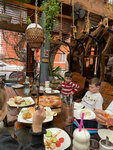 Великолепный интерьер! Интересная подача блюд, очень приветливый и вежливый персонал. Еда вкусная, без изысков, но вкусная По возможности, располагайтесь на веранде, она самая красивая.