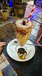 В первую очередь, думаю, стоит сказать о ярком необычном дизайне кафе. Выглядит сказочно, не только снаружи, но и внутри. Приятный, вежливый персонал. Так же хочется выделить прекрасную идею с лампочками для вызова официанта и оплаты счета, для меня часто бывает проблемой окликнуть официанта. Здесь такой проблемы не возникает Еда вкусная по разумной цене, разнообразие фирменных блюд и напитков приятно впечатляют.