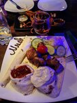 Прикольное место , интерьер , подача блюд. Немного странное обслуживание-десерт перед горячим ). Салаты вместе с горячим)). Кухня или официанты явно не справляются , хотя был день и посадка была наполовину.