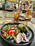 Пожалуй одно из самых необычных кафе, посещенных мной. Во-первых, крутой дизайн (качели), ратсения, водопады. Круто обыграно меню на планшетах, просто и удобно. В-третьих, большие порции. В-четвёртых, очень и очень вкусно (особенно свиная рулька запеченная и сыры жареные). Всем советую посетить, но советую сначала забронить столик