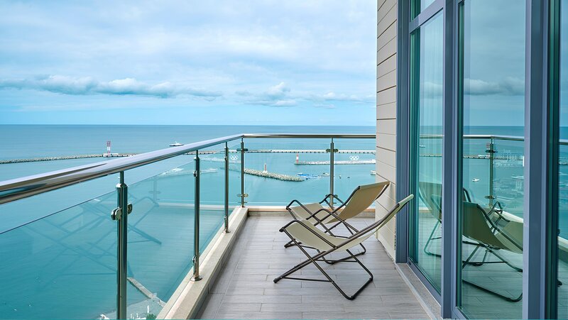 В апартаменте 2 отдельные спальни, кухня-гостиная и балкон с панорамным видом на море. В номере 3 с/у со стиральной машиной и гардеробная комната.