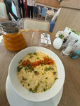 Плюсы: 1. Быстрое обслуживание - несмотря на выходной и большую посадку ждали 3 блюда не более 10 минут👌 Официант (имя, к сожалению забыл) предложила нам пересесть с прохода на только освободившиеся, удобные места с диванчиком. Приятно, что персонал не равнодушен и эмпатичен🤗 2. Кухня очень достойная. Заказали томатный суп, ризотто с сыром и яйца пашот. Всё понравилось и по вкусу и по визуалу. Мы были в восторге. Настроение сразу ушло на пару пунктиков вверх😋 Минус только один, но весомый - очень горький латте. Однозначно, я бы вернулся еще раз ради кухни👍