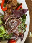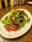 Отпуск начался с поездки в Элисту. Вернулись сюда раньше чем думали 😅 Зашли покушать в Калмыцкая кухня «УРАЛАН» [Калмыкия, Элиста] и попробовать блюда, которые не успели при первом посещении -Салат "ойратский" с моралом-160г/480р-вкусный салат, мяса много. Мясо волокнистое, но жуется хорошо, по вкусу напоминает говядину. -Салат "тибетский" с мясом яка-160г/330р-зелень и заправка очень вкусные, а вот мясо суховатое и жёсткое. Мясо ещё полили бальзамическим кремом и почувствовать какой-то особый вкус яка невозможно😢 -Жареные бараньи тестикулы-230г/290р-то ради чего мы приехали😅 мясо нежное, похоже на куриный фарш. Сверху хрустящая масляная панировка. Запаха барана почти нет. С пивом было бы отлично!👍 -Жареная верблюжатина с луком-380г/900р-мясо нежнейшее, растушено с луком и чем-то сладким. Очень вкусно, очень жирно, очень сытно. По вкусу мясо что-то среднее между говядиной и бараниной. Понравилось🤩 Запили всё это лимонадом манго-маракуйя-700р/1л-питкий, не слишком кислый, не слишком сладкий, хорошо освежает. Отлично подошёл, что бы запить мясные блюда👍 В меню ещё много блюд, которые хотелось бы попробовать, но мы и так объелись 😌 Можем рекомендовать это место!