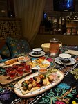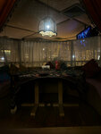Приятная музыка, приветливый учтивый официант, Новогодние огоньки и музыка) приглушённый свет и есть шторки, чтобы отгородиться от глаз)ламповая атмосфера. Вкусный шашлычок из баранины с курдюком, очень вкусный гарнир с картошкой и шампиньонами. Облепиховый чай свежий из настоящих ягодок) Есть в меню кальян и крепкий алкоголь, всё как в ресторане! Ресторан, лаундж, бар.